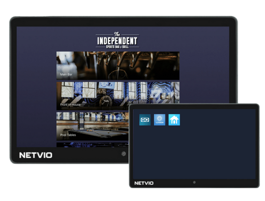 13.3″ PoE-powered touchscreen controller featuring NetvioGo — a license-free AV control interface for managing video walls, audio zones, and smart venue automation